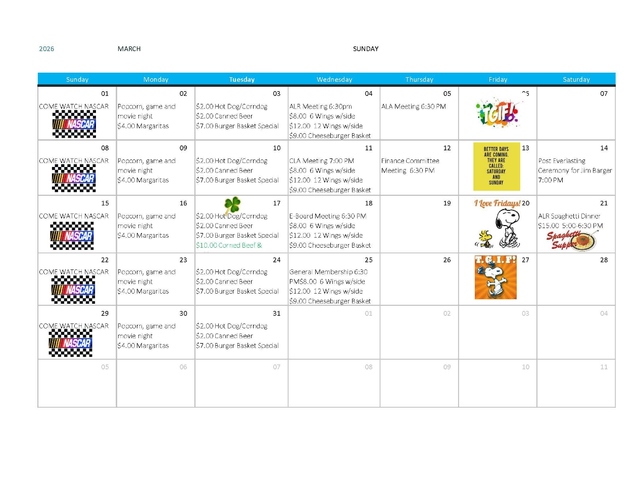 For a printable copy of the calendar, click HERE